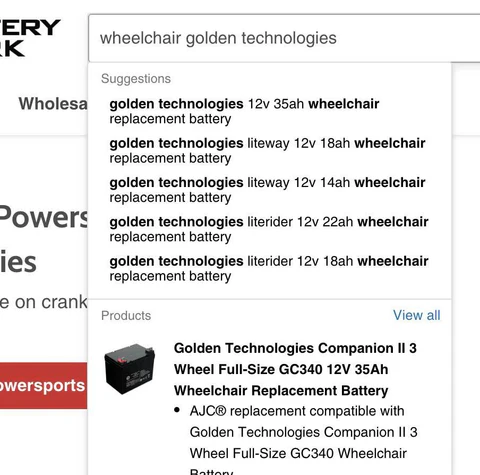 When you combine several of these features, the chances of finding your exact replacement should increase. If you search for Type(wheelchair for example) dimension (something like 7.8 x 5.2 x 6.4) and even brand (Golden Technologies), you can often find your replacement unit. This method is a little more of an inexact science so try some different combinations first (Ah, V + brand) or (Ah, V + Dimensions).