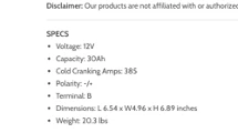 The main difference you’ll notice is in the Specs section. The Pro version on the right has 32 Ah vs 30Ah and 430 Cold Cranking Amps vs 385 CCA.