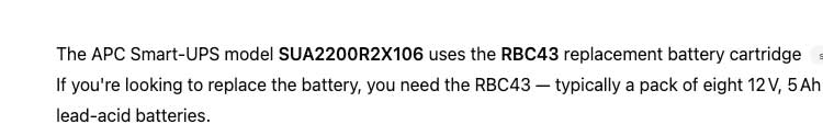 You need to identify the model number on your UPS device. Look at the back or bottom of the unit. You’ll see a sticker that will contain a model number and a serial number. APC has a useful guide on their website that helps to identify the model number. Once you have the model number, do a search to find the RBC number on their website or even Google or ChatGPT.
